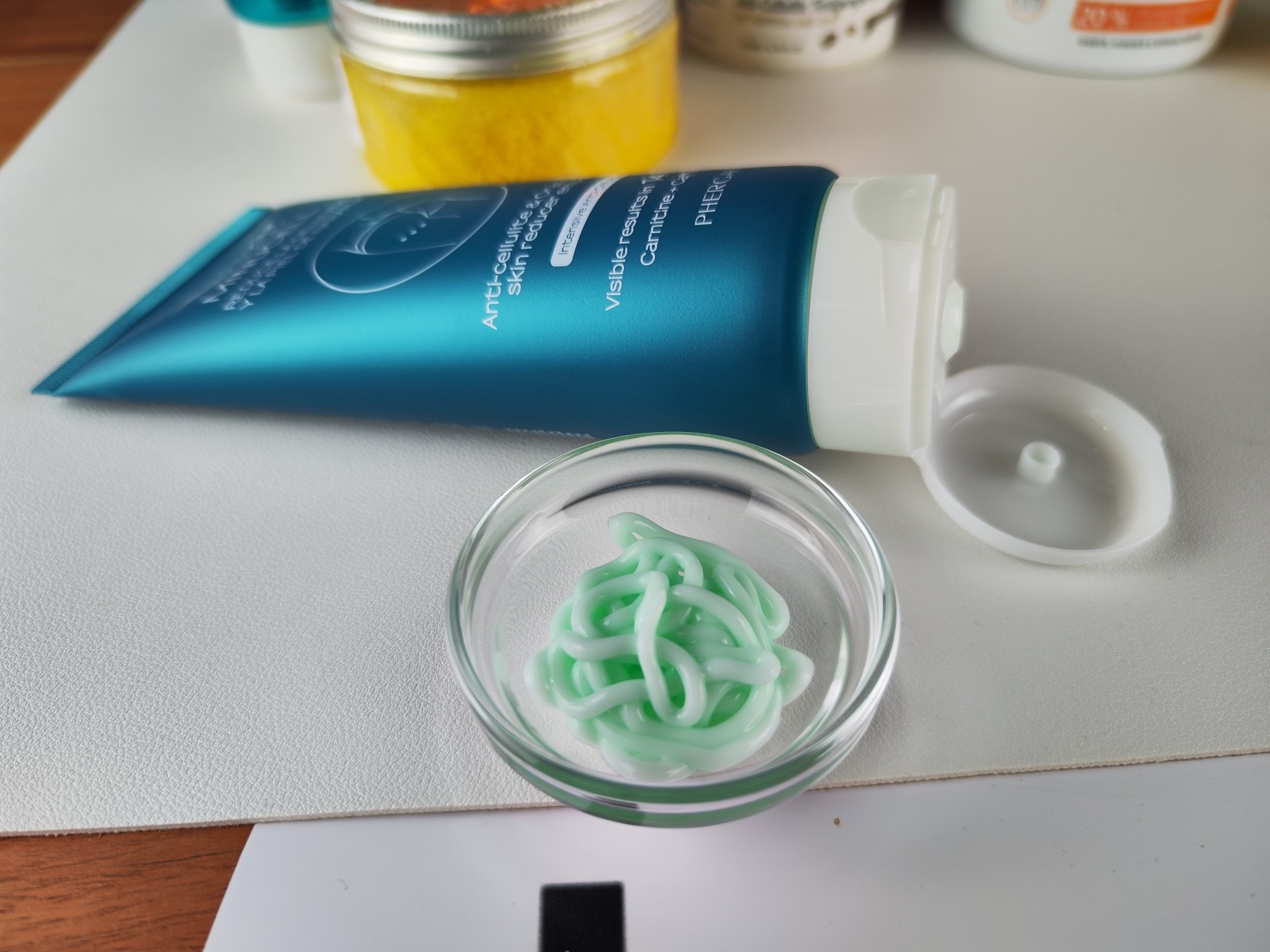 Ich habe die Zutatenliste geprüft und erkannt, dass es viele natürliche Öle und Extrakte enthält, die in Verbindung mit der Koffein-Mischung dazu beitragen können, die Haut weicher und straffer zu machen. Ich denke, dass es in Ordnung ist, als Körpercreme zu verwenden, um eine weichere Haut zu erreichen, aber als Cellulite-Creme würde ich es aktuell zumindest nicht empfehlen.