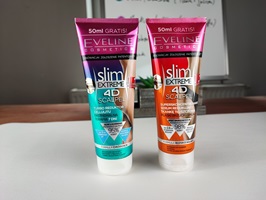 Die beiden Eveline Slim Extrem 4D Gels haben denselben Hautstraffungs-Effekt, aber unterscheiden sich in ihrer Wirkung: das orange mit "hitzewirkung" soll laut Herstellerangabe den Fettabbau ankurbeln, während das grüne "kühlt und entspannt" und eine Lymphdrainage verursacht.